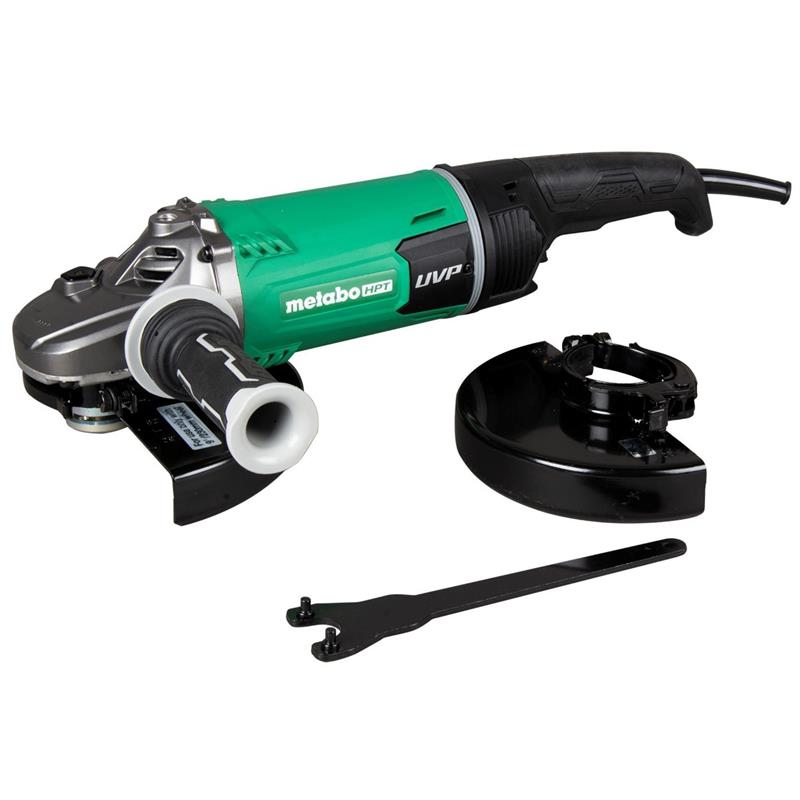 The 7 Inch or 9 Inch 15-Amp Disc Grinder (G23SCY2) offers a great value for those in need of a large angle grinder. An all new compact and lightweight motor design delivers more power than ever before, and the featured Metabo HPT Overload Protection System ensures operator safety. The G23SCY2 utilizes a full User Vibration Protection (UVP) system with an anti-vibration side handle, two tool-less wheel guards, and a Lock-On/Off trigger to prevent additional fatigue that professionals may experience during labor intensive work.